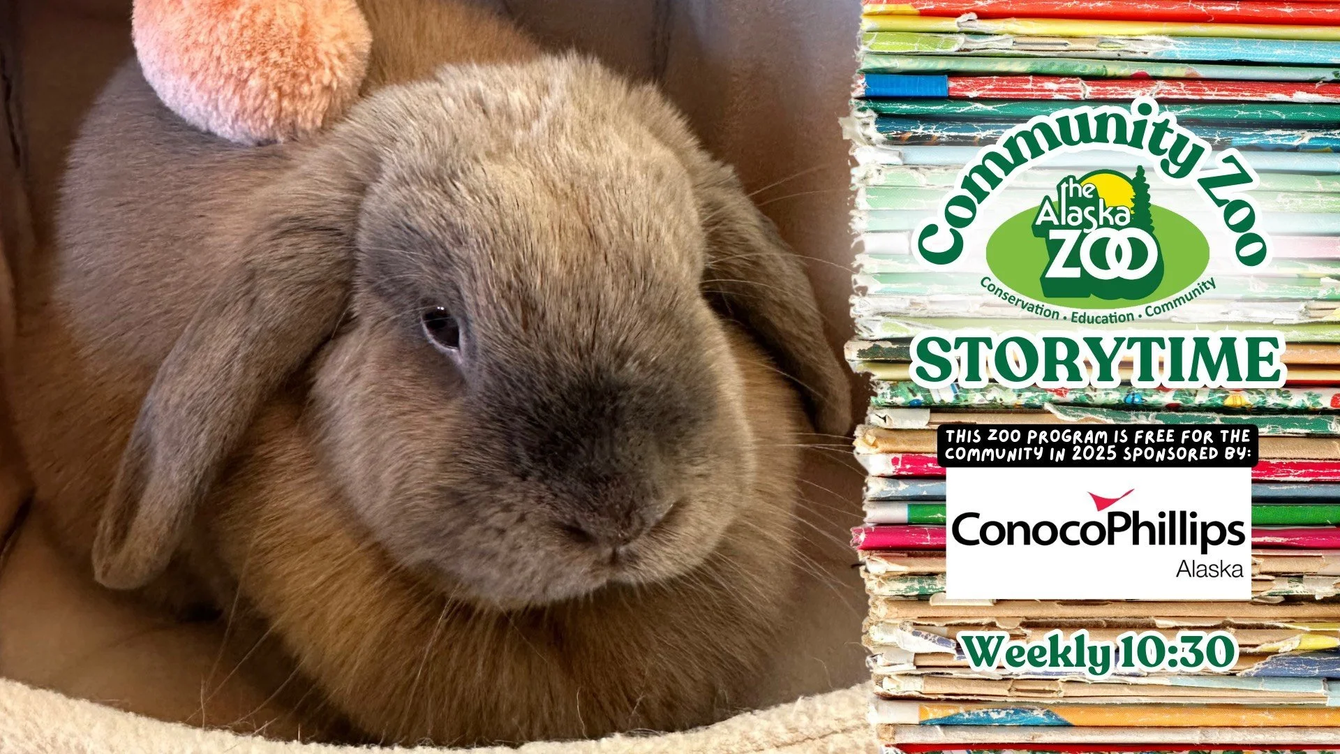 Join us for our weekly Community Storytime program sponsored generously by CononcoPhillips Alaska. The program is geared toward emerging readers ages 4-7 but all ages are welcome. We have a volunteer who reads animal themed storybooks and we have fun sitting cushions, seats for adults and more. Visit our Storytime page for all of the details and join us! This program is FREE for all and held in the Gateway Hall outside of the zoo entrance. If you plan a zoo visit, just pay to enter the zoo after the program or use your membership.